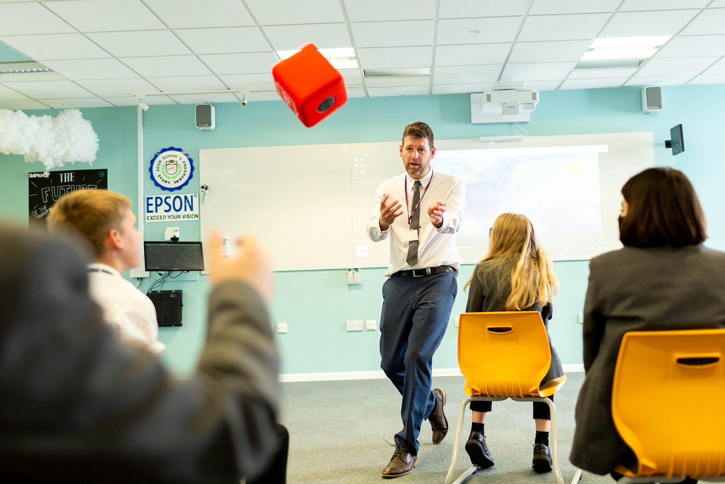 A clear illustration of this is the way we arrange our classrooms. In the UK at least, people accept this as they do the weather. I visit many classrooms. There is an inevitable certainty to things. A set ‘way’ to do education. The rows of desks are as fixed as the room that holds them, angled forward, waiting for something to happen. And this is the point: little changes. The teacher occupies the front, carefully operating within a five-metre radius of the whiteboard.
